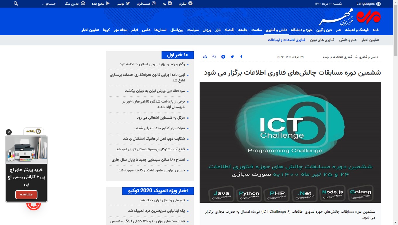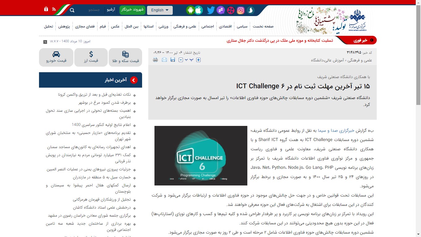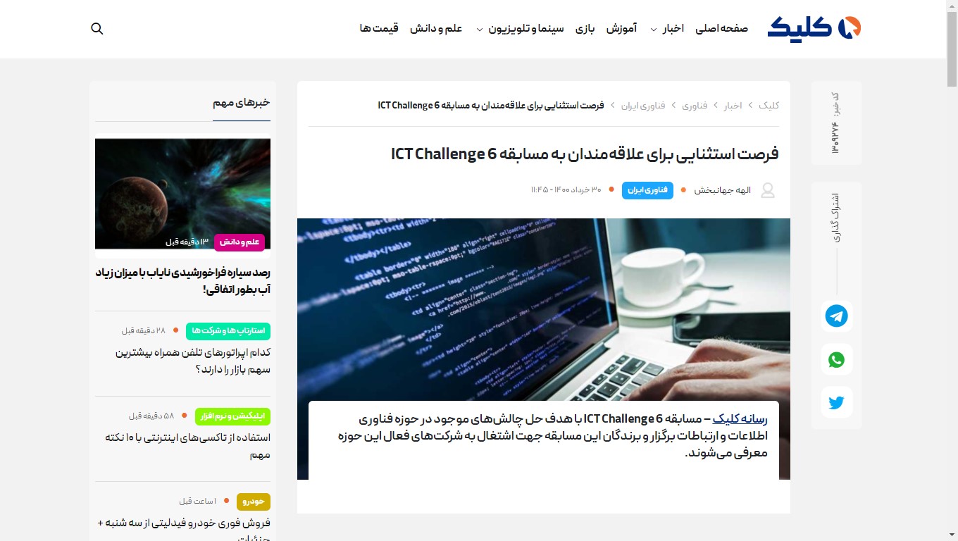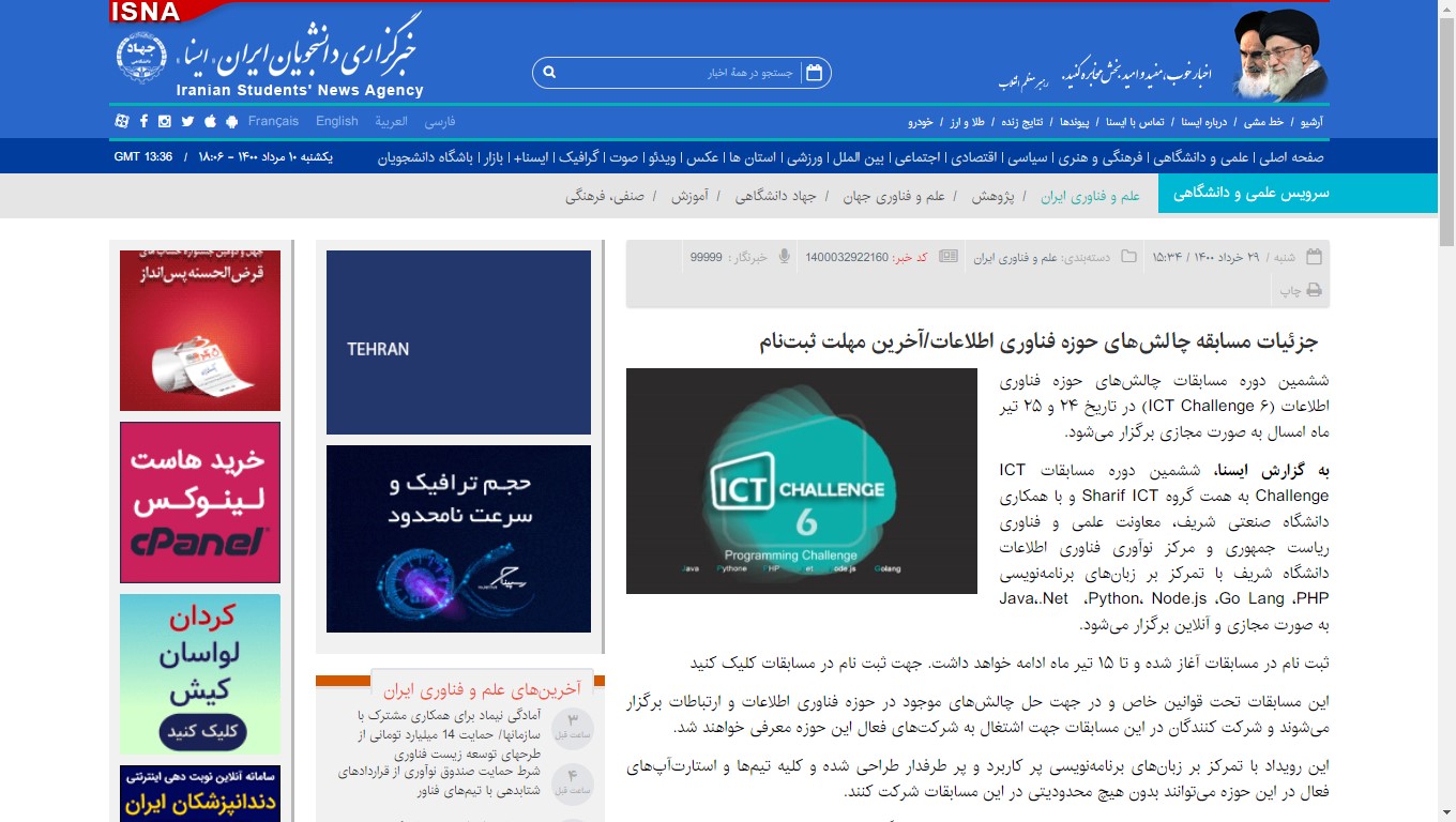 گوشه ای از پوشش خبری ششمین دوره مسابقات ICT Challenge در خبرگزاری های کشور